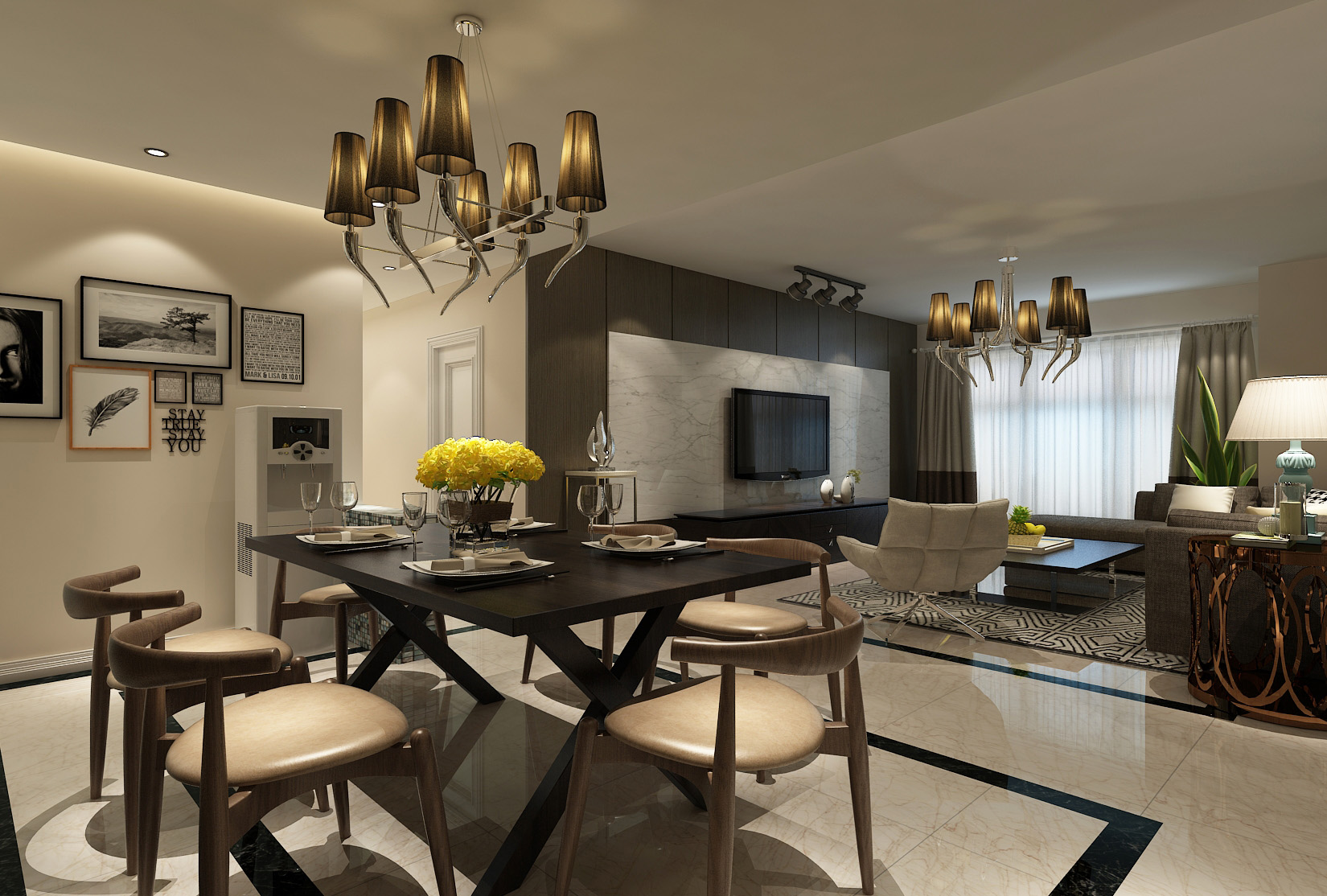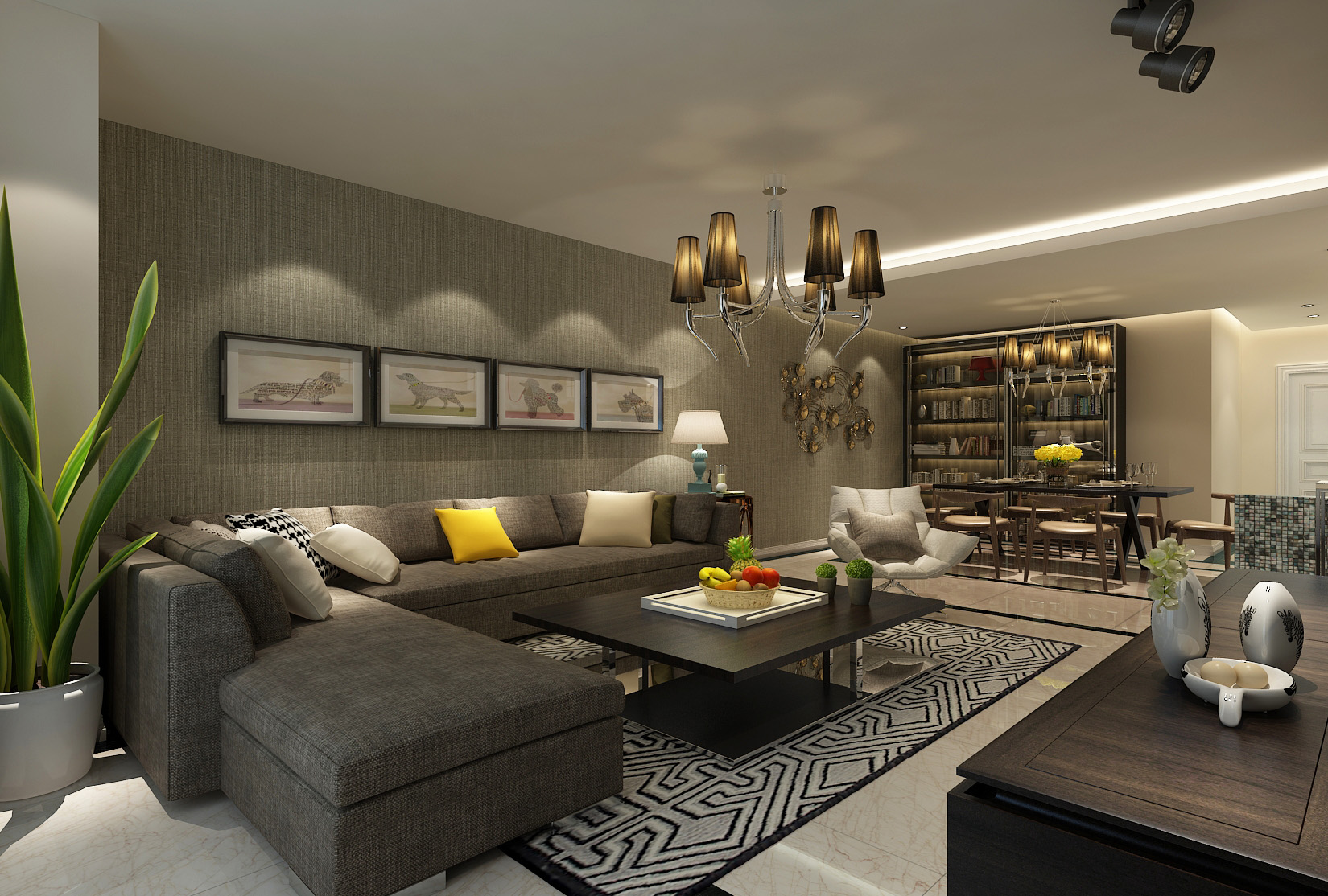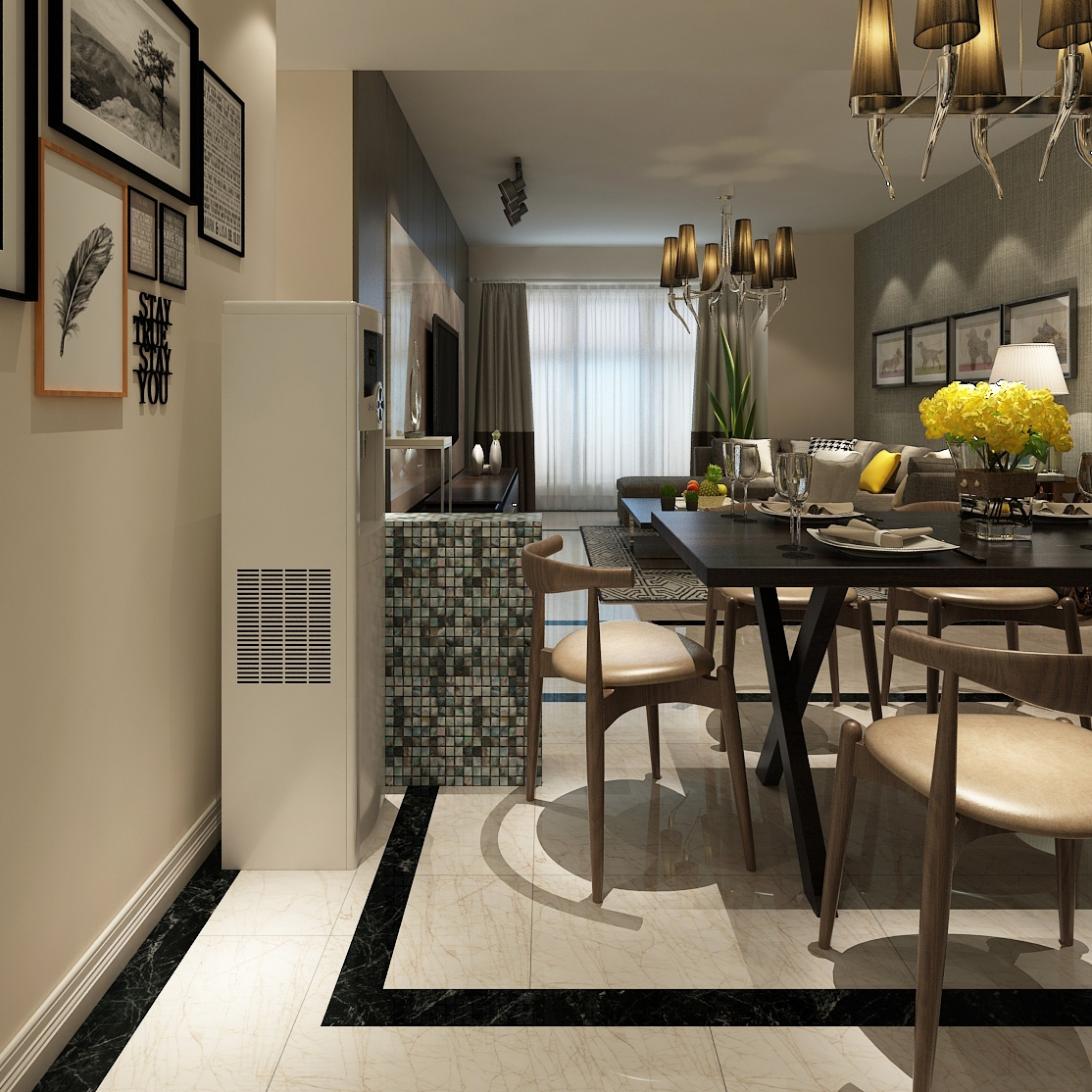 本案中的146平米的三居室整體采用了現(xiàn)代風(fēng)格裝修,背景墻板與門型采用米白材質(zhì),與電視墻外側(cè)黑色背景,電視柜桌子、茶幾,形成鮮明對(duì)比,輔之灰色點(diǎn)綴,讓整個(gè)空間充滿典雅大氣,又不失現(xiàn)代時(shí)尚感。燈光多以暖色,給人以溫馨懷抱的暖感,加之白色調(diào)相輔相成,營(yíng)造溫馨的同時(shí)又偏于現(xiàn)代生活的明朗。