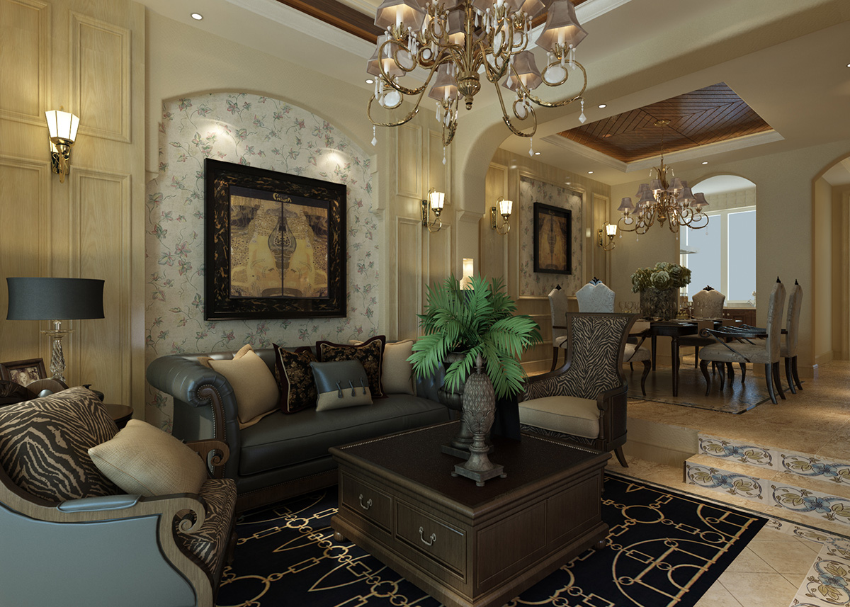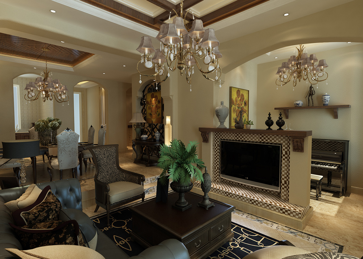 本案例287平聯(lián)排別墅采用美式風(fēng)格,美國(guó)是一個(gè)崇尚自由的國(guó)家,這也造就了其自在、隨意的不羈生活方式,沒有太多