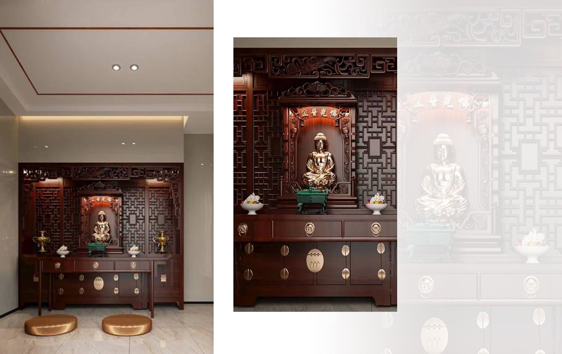 在都市中,佛堂,一方安頓心靈之所。一張供案,一方佛龕,一處禮佛與休閑結(jié)合的空間。去除憂煩,凈化身心,一日三省吾身。在這里,心有常清凈,無風自清涼。在這里,心有山海,靜而不爭。在這里,任世事變化,尋一處心安