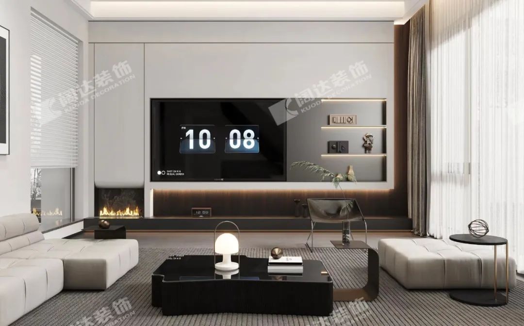 客廳電視背景墻運用簡約、當代的手法去布局,借以保持空間的質感,外表平靜,卻承載了生活里的豐富。像是藝術家康定斯基在畫布上自由地發(fā)揮想象空間。