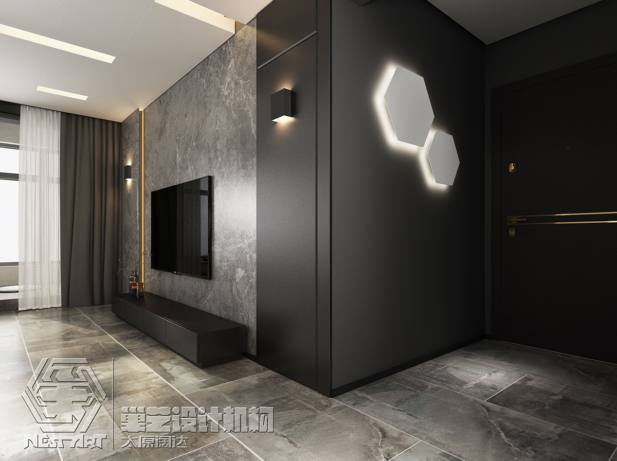 居家場(chǎng)域以沉靜色調(diào)為基底,融匯復(fù)合媒材,營(yíng)造自然質(zhì)樸氛圍;另外亦希望透過(guò)重整空間格局,讓室內(nèi)達(dá)到通透敞亮的效果。再將視線(xiàn)移至天花板的特殊結(jié)構(gòu)設(shè)計(jì),除劃分不同場(chǎng)域及活動(dòng)范疇,同時(shí)創(chuàng)造了視覺(jué)的延展性及豐富性。客廳與餐廳在此流動(dòng)空間的設(shè)計(jì)下,無(wú)形間促進(jìn)家人情感的共享與交流;并于百葉窗開(kāi)掩時(shí)的光暈映照下,灑落一抹靜謐柔美,形塑家的溫馨暖韻。
