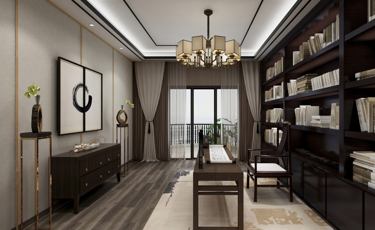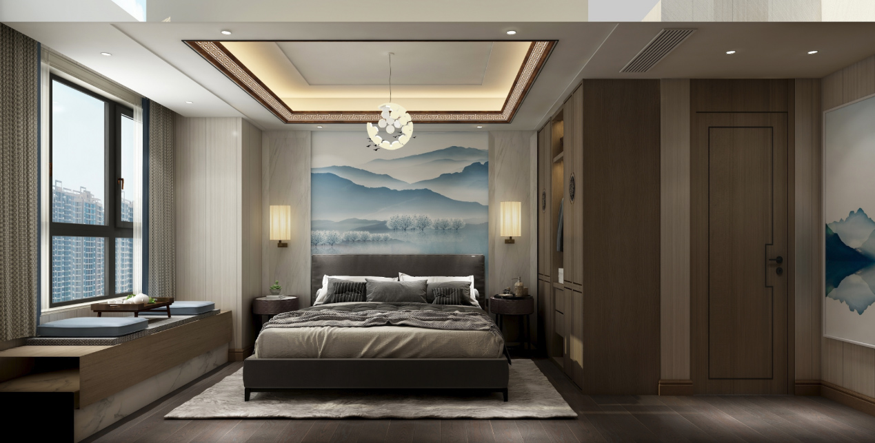 該房子的客廳面積非常大,吊頂造型上,男主人要求造型夸張一些,不要傳統(tǒng)的邊吊,影視墻造型采用傳統(tǒng)的三段式,規(guī)整又不失典雅,中心視角運(yùn)用中國(guó)的水墨元素搭配方形壁燈,更能凸顯新中式的氣質(zhì)。主臥墻面采用素色墻布,增加墻面的肌理感,吊頂線條以中式深咖色實(shí)木線條為主,飄窗設(shè)計(jì)為休閑飄窗,空閑下來(lái)可以喝喝茶、看看書(shū),面積雖小,不失生活的品味。同風(fēng)格案例:更多>>